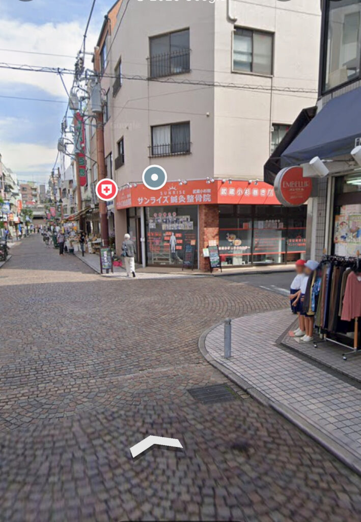 (新丸子駅西口から日本医科大学武蔵小杉病院に向かうまでの商店街)
