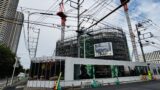 ▲高いクレーン車がたくさん。8月中旬の様子です。