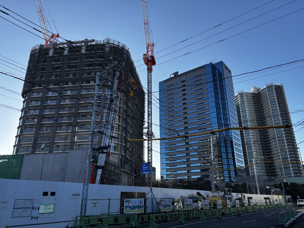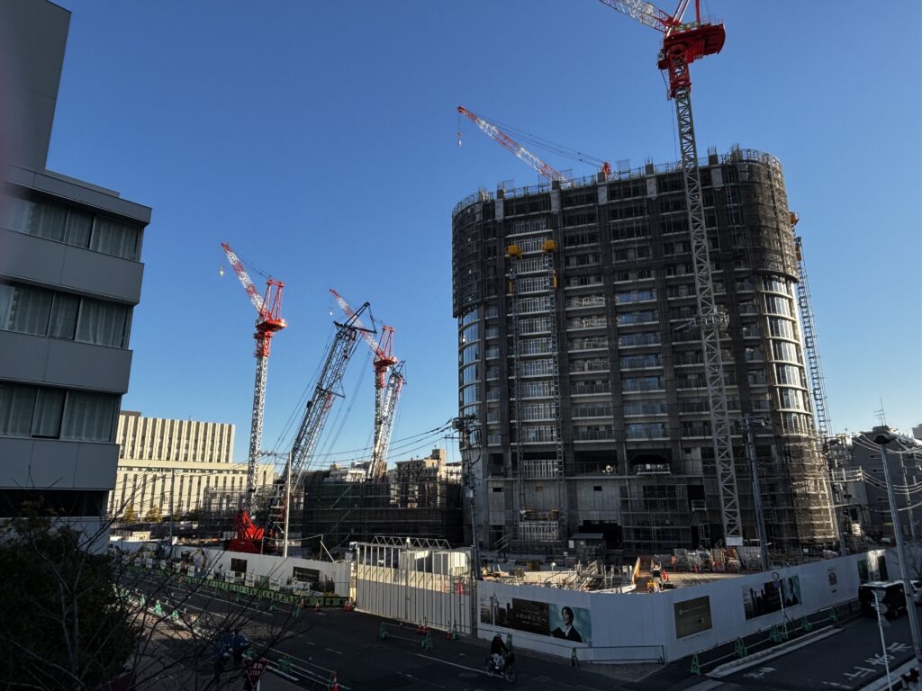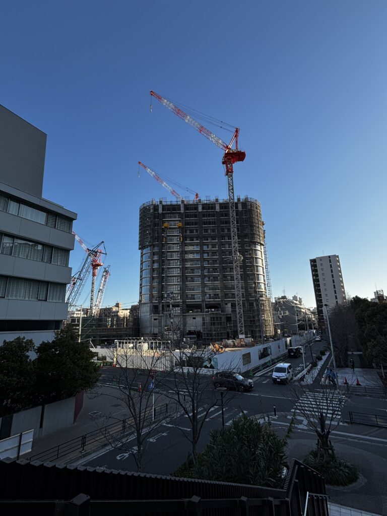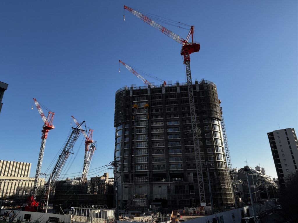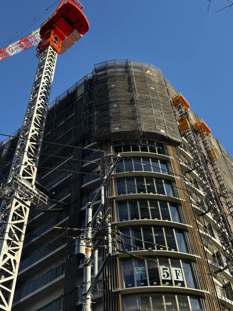 いま、15階くらいまで建設が進んでいますよ!朝からゴンドラが動いており、子どもたちが見たら喜びそうです🤩