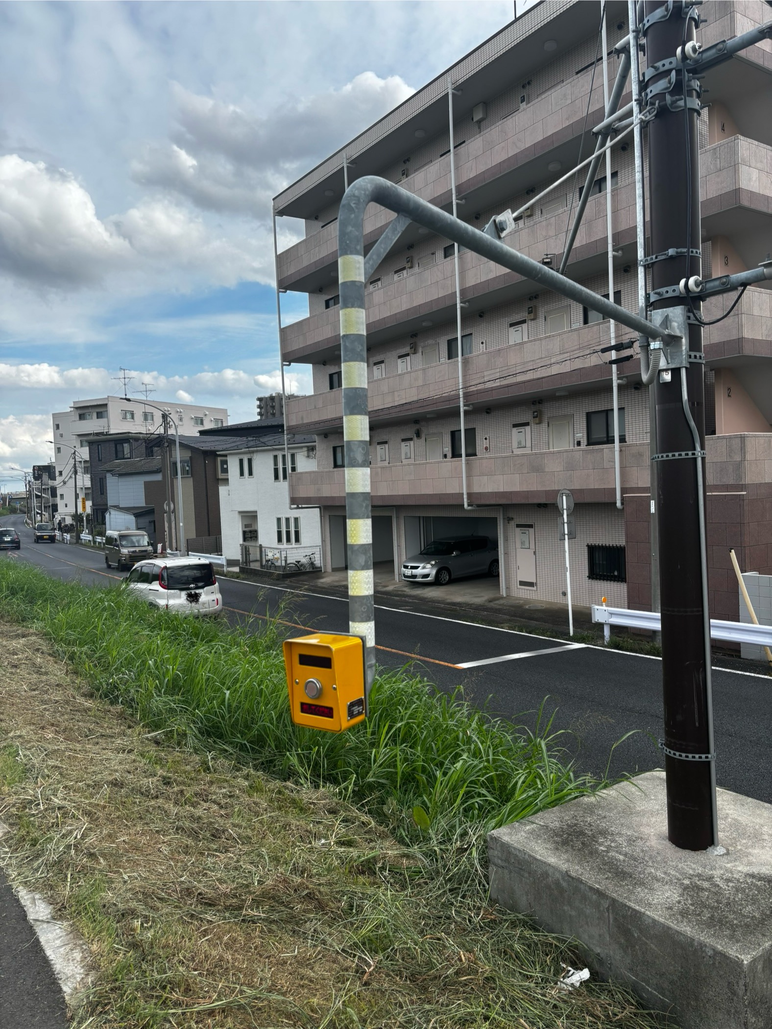 信号の押しボタンが上からぶら下がっている場所があります!どこだか分かりますか?