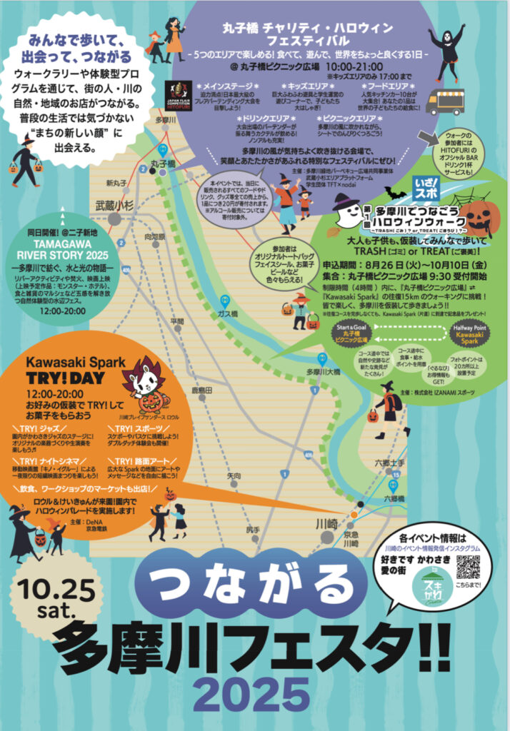 10/25(土)の丸子橋付近はハロウィンウォーク以外にもイベントが開催されます♪ぜひお出かけくださいね🎃