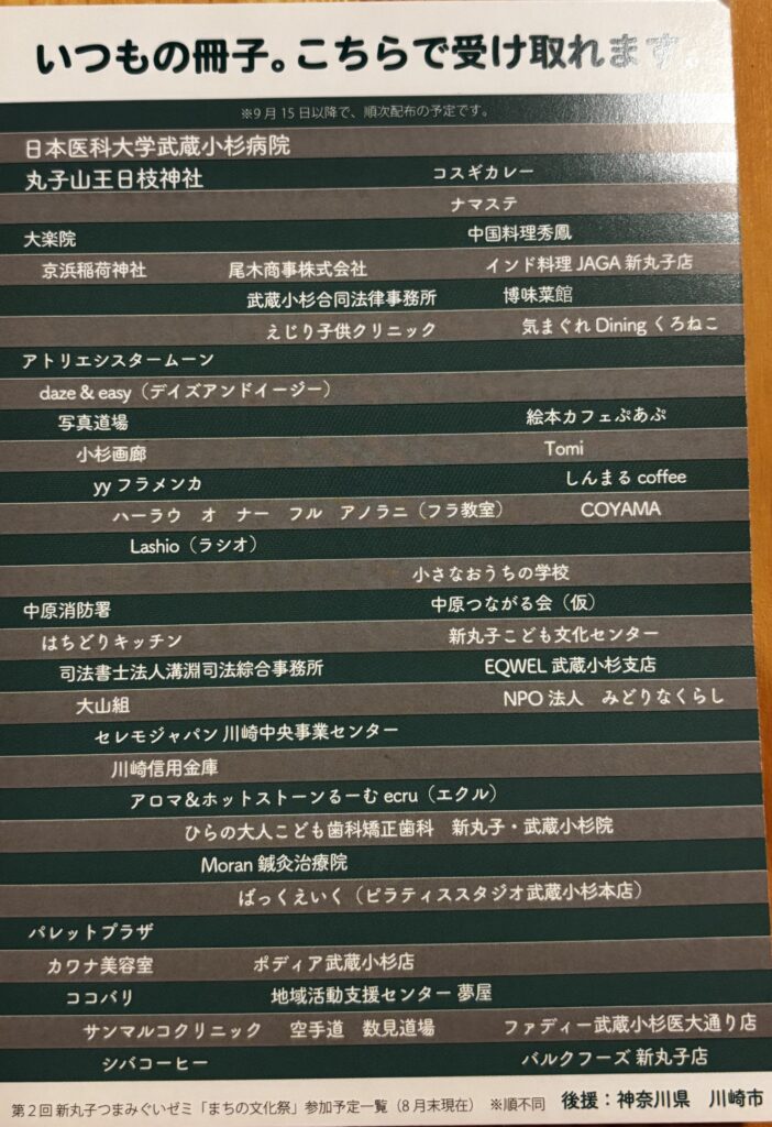 2025年9月23日(秋分の日)から、新丸子付近の店舗や施設にて配布予定。配布場所は拡大してご確認ください🔍