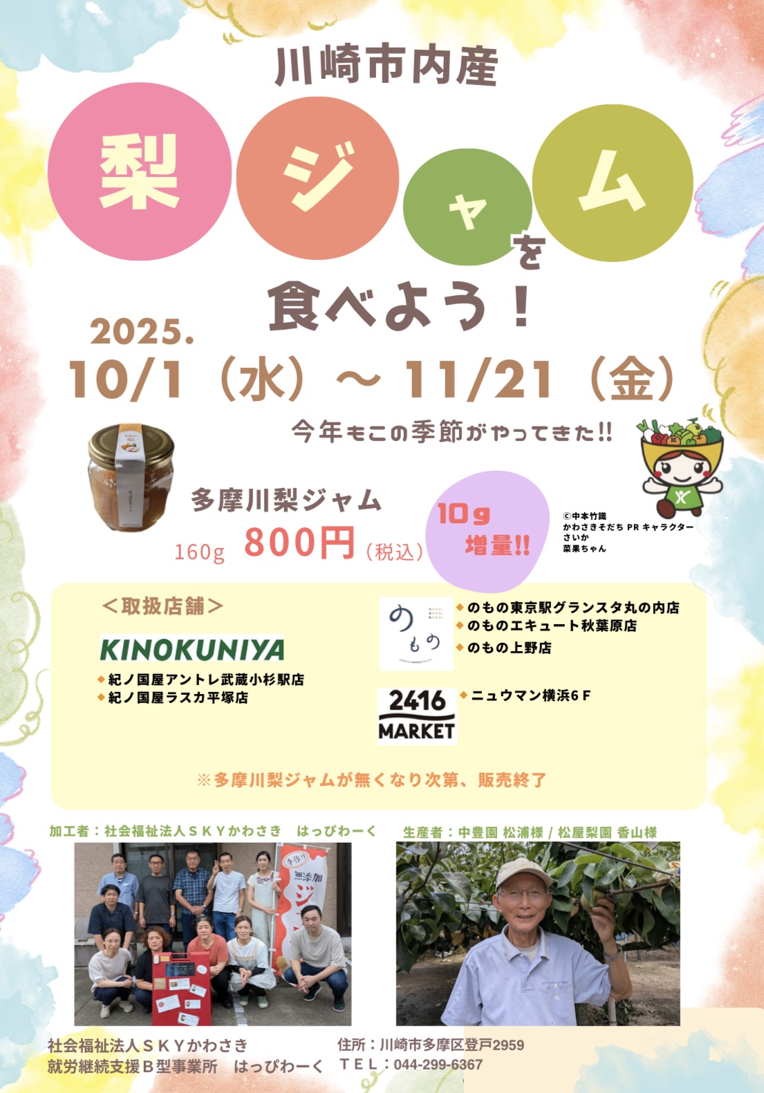 生産者は、中豊園の松浦さま・松屋梨園の香山さま。加工者は社会福祉法人SKYかわさき はっぴわーくさまです😊