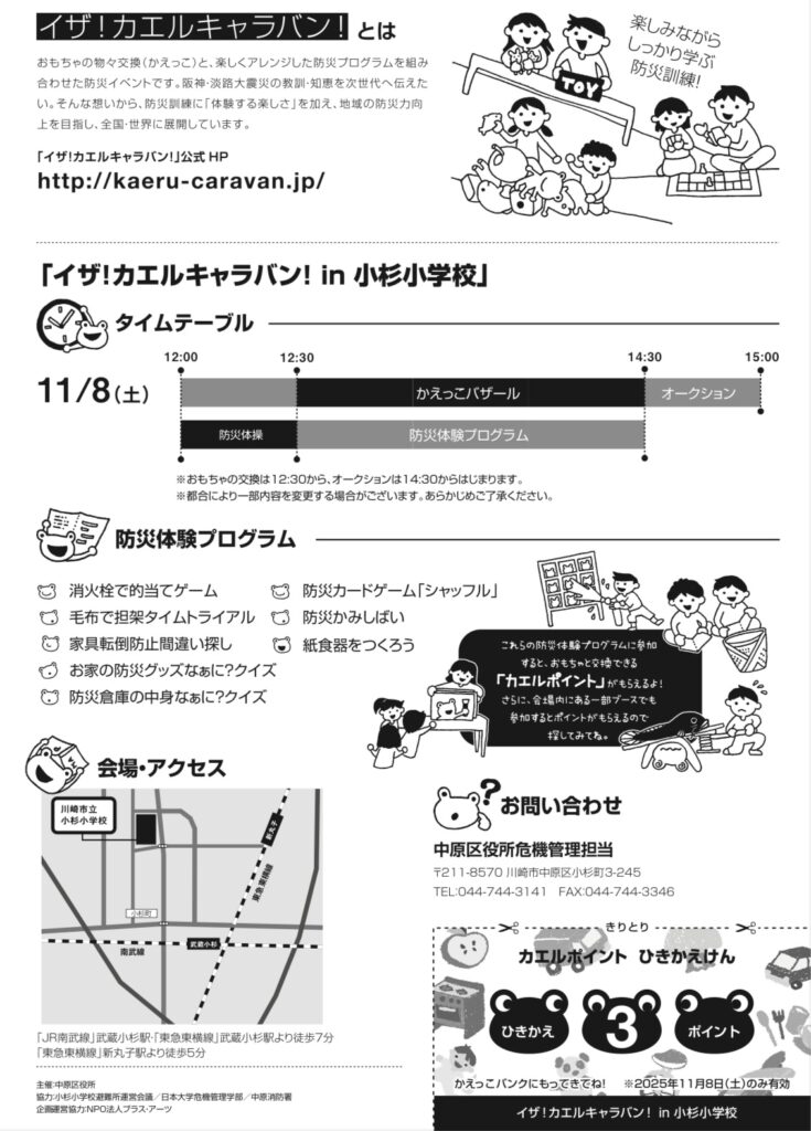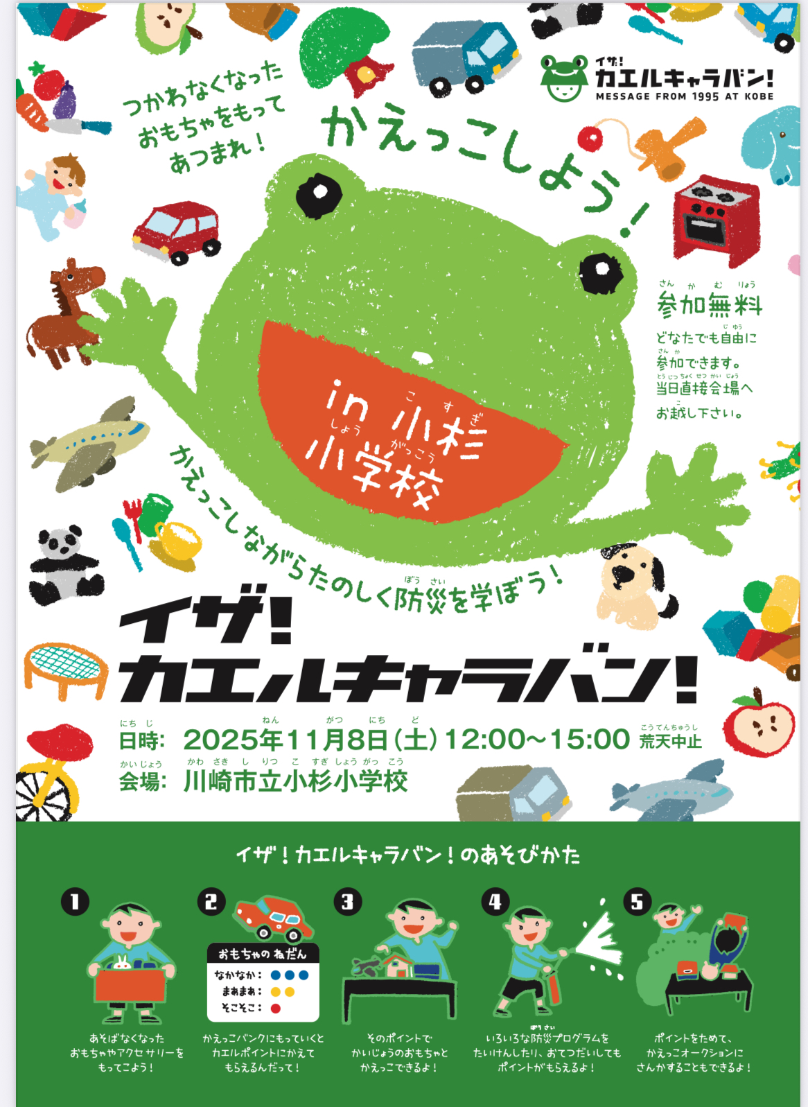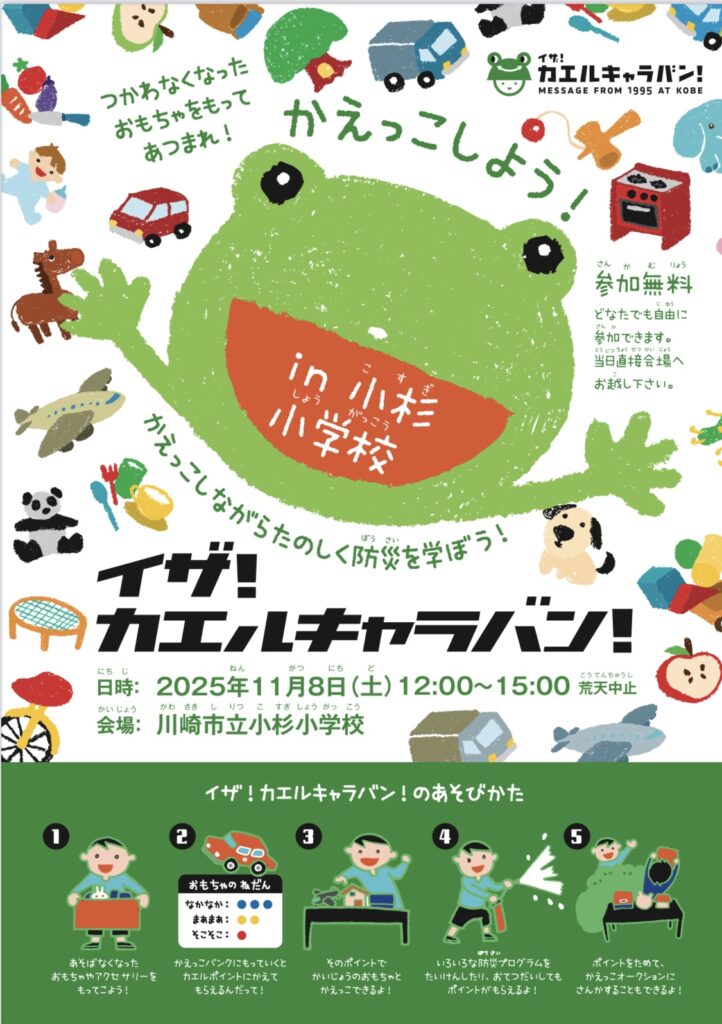【2025.11.8(土)/未就学児向】防災体験イザ!カエルキャラバン!@小杉小学校