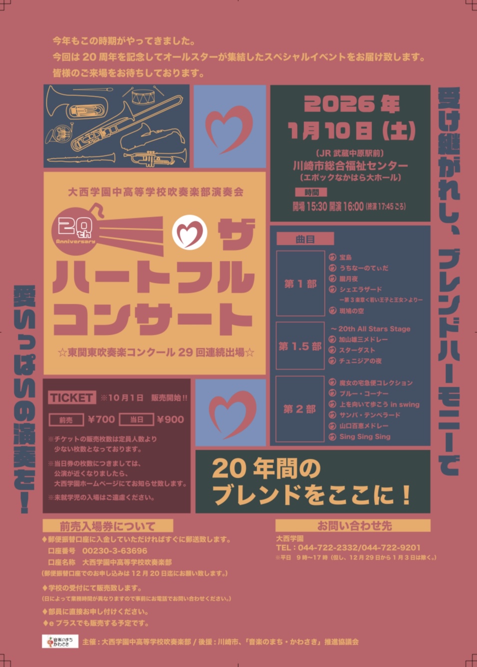 第20回 ザ ハートフル コンサート 大西学園中高等学校吹奏楽部演奏会のチケット情報 - イープラス