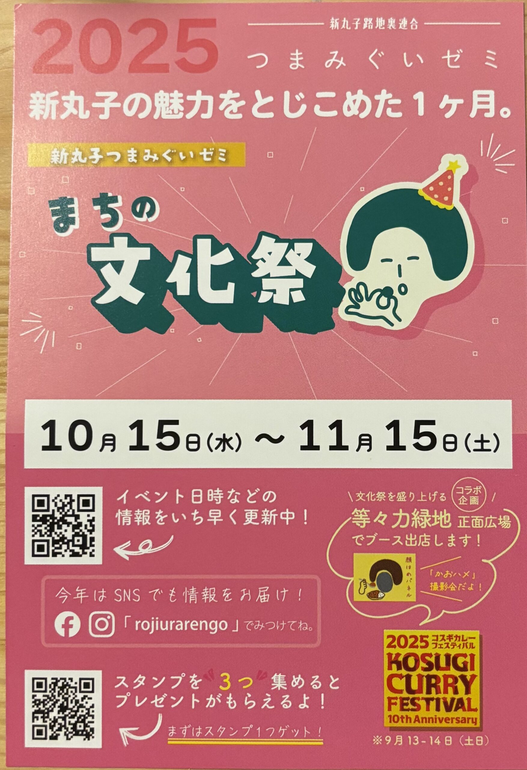 2025.10.5(水)〜2025.11.15(土)に開催されます”2025新丸子つまみぐいゼミ まちの文化祭”のガイドブックの配布が開始されています!